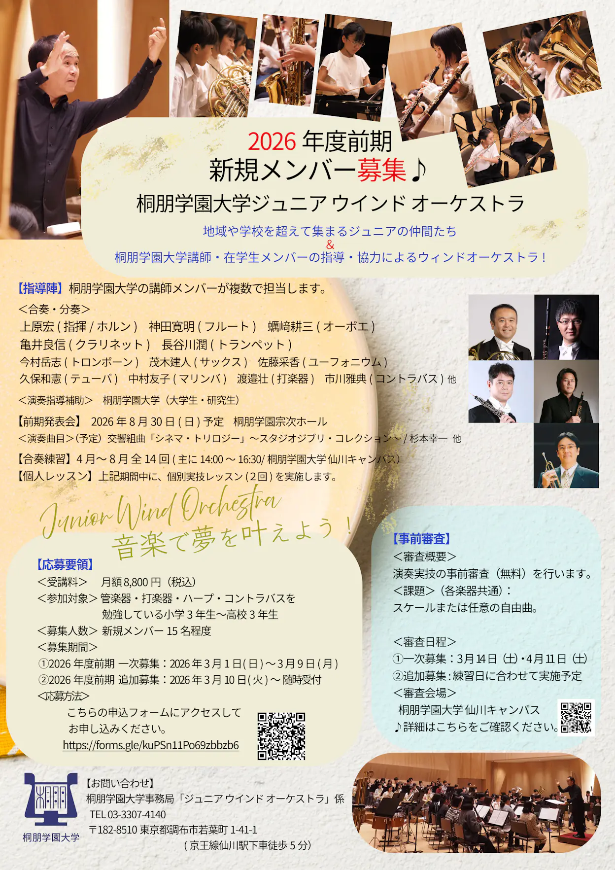 2026年度前期メンバー募集「桐朋学園大学ジュニア ウインド オーケストラ」