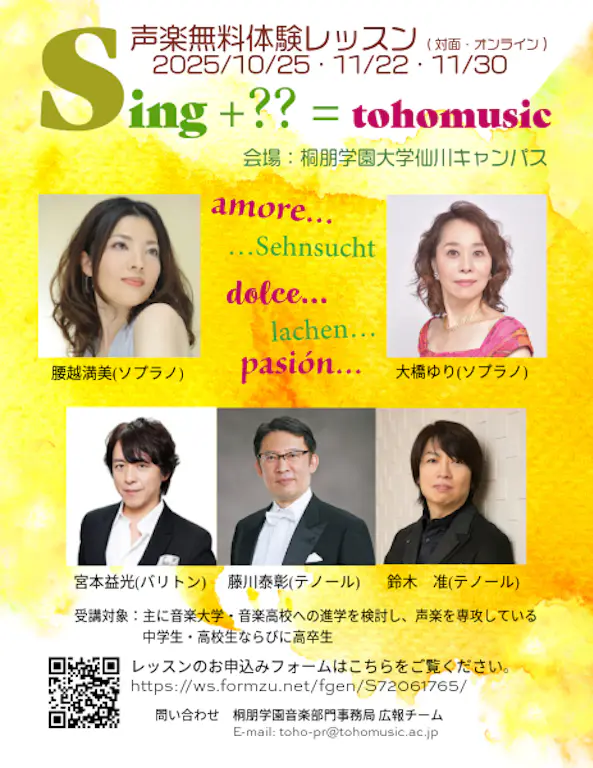 2025年10月25日・11月22日・11月30日開催 桐朋学園声楽無料体験レッスン